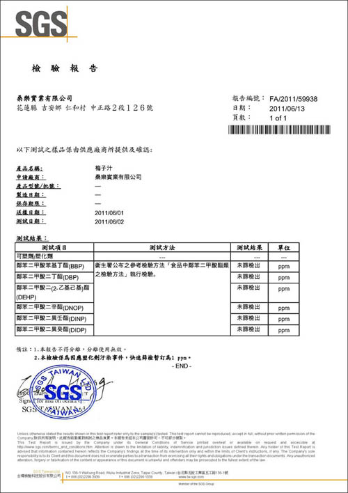 桑樂實業有限公司產品已通過SGS食品檢測報告,決不含塑化劑成份,請消費者安心購買!!